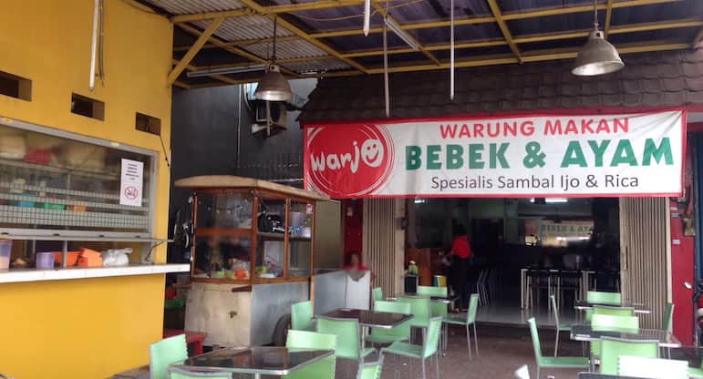 Warung Wakaka Menu Menyediakan Makanan Jalanan Desserts. Para pelanggan setia Warjo kini sudah dapat menimati kopi Kondjie yang sudah tak diragukan lagi kenikmatannya. BANGKAPOSCOM BANGKA--Warung Ijo Warjo menyediakan menu makanan yang saat ini menjadi menu spesial di tempat ini yaitu Bebek Rempah dan Bebek GorengBebek Rempah ini sendiri menurut manager warjo adalah karena makanan ini banyak di bumbui oleh rempah-rempah.