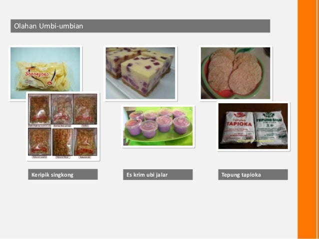 Ubi dapat diolah menjadi berbagai jenis makanan yang lezatSelain lezat ternyata ubi mengandung nutrisi yang dapat membantu melawan beragam penyakitNah. Pengolahan kentang menjadi bahan setengah jadi yaitu tepung kentang dan kentang beku 208 Kelas VIII SMPMTs Semester I Kentang sebagian besar diolah dan dikonsumsi hanya sebatas menjadi sayuran ataupun berupa olahan makanan tradisional yang dikembangkan berdasarkan kebiasaan dan resep tradisional. Ubi jalar atau kerap disebut ketela rambat adalah salah satu bahan makanan yang mudah sekali ditemui di Indonesia.