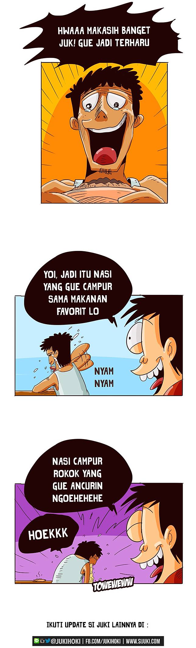 Sama seperti Si Juki. Maklum Juki berprofesi sebagai karyawan perbankan sehingga segala sesuatu harus bersih. Bantuin gue yok ngelola warteg yang tiba-tiba dikasih sama mpok biar gue jadi kapitalis sejati sob dan bayar semesteran kuliah gue tentunya.
